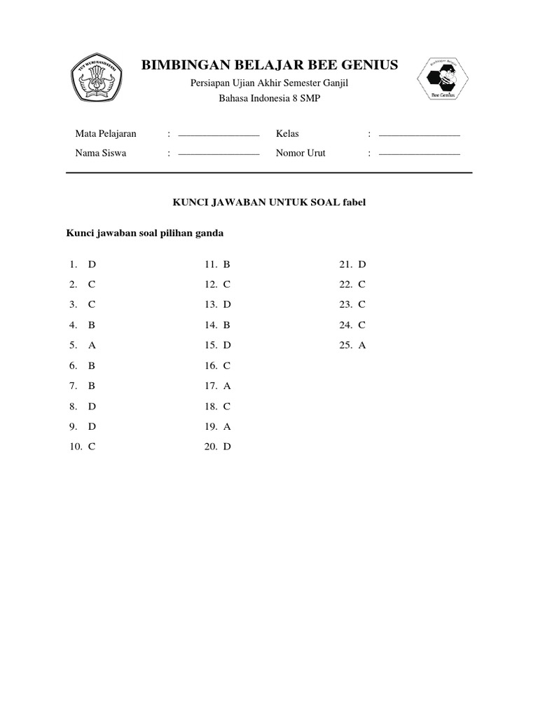 Soal Pilihan Ganda Fabel Kelas 7 Beserta Jawabannya / Kisi Kisi Soal Ulangan Bahasa Indonesia Tentang Fabel / Soal ujian juz 30 guru ilmu sosial.