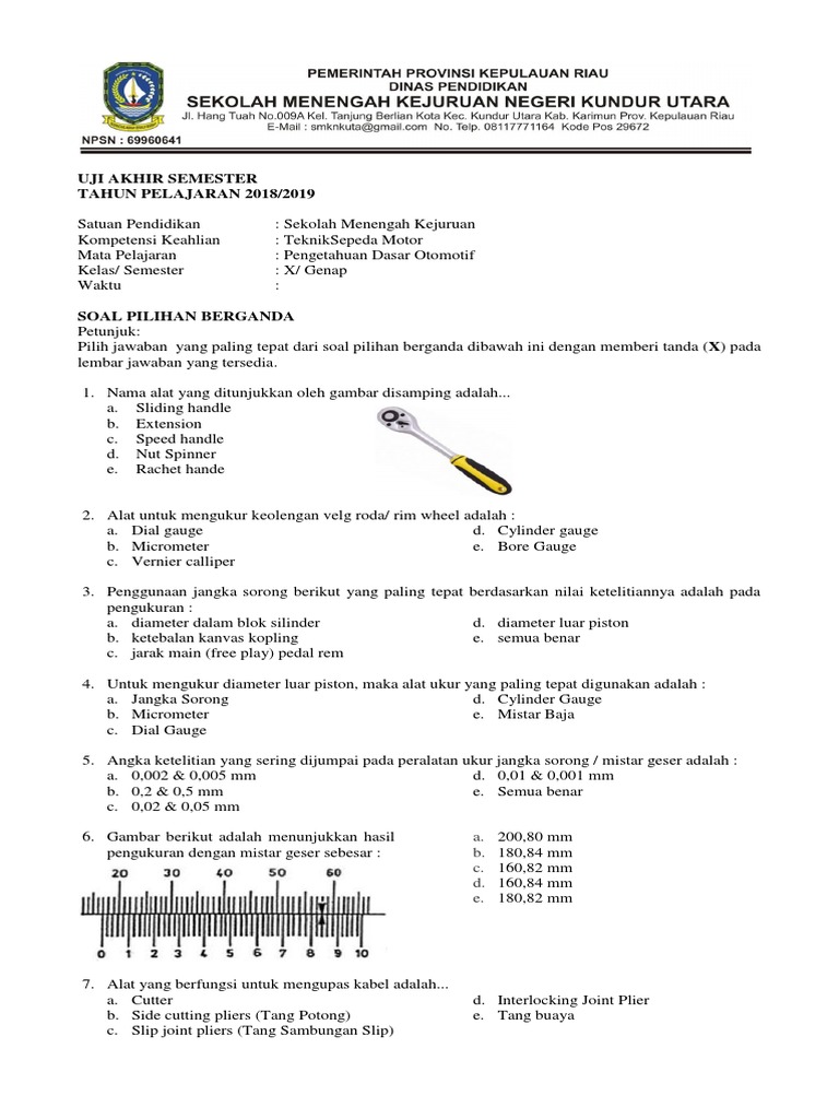 Soal Pilihan Ganda Tdo Semester 2 : Soal Uas Tdo Oto Tkr 2013 : Contoh soal materi tdo kelas x semester 1 asalamualaikum kali ini saya akan meshare contoh soal soal materi semester 1 dari materi gaya sampai konversi energi sebagai bahan latihan semoga bermanfaat cekidot.